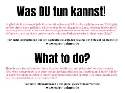 - Andere Menschen direkt ansprechen und um Hilfe bitten: “Sie da in dem blauen Pulli, helfen sie mir, ich werde belästigt!”